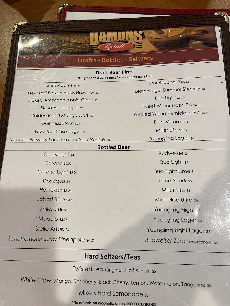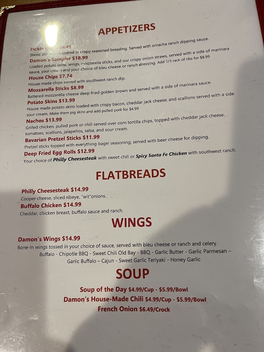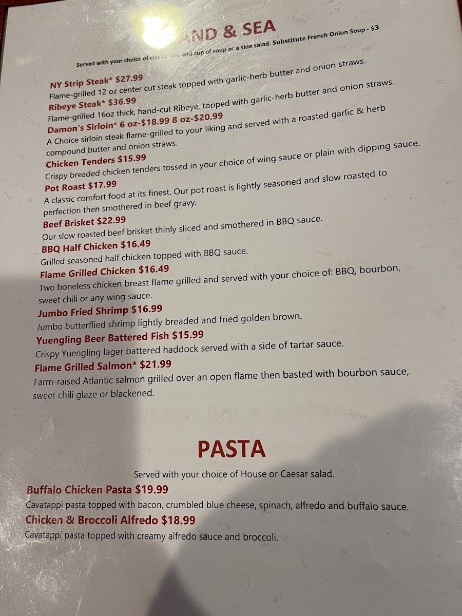 If you're in the mood for a hearty meal in Hazleton, PA, look no further than Damon's Grill Menu. Nestled at 10 Woodbine St, this grill serves up a variety of delicious dishes sure to satisfy any appetite. From mouthwatering steaks to perfectly cooked seafood, each dish is crafted with care and packed with flavor. Whether you're craving something light like a fresh salad or something more indulgent like a juicy burger, Damon's Grill has you covered. The menu offers a range of options, making it easy to find the perfect dish to suit your tastes. Come hungry and ready to enjoy a meal that's sure to hit the spot!